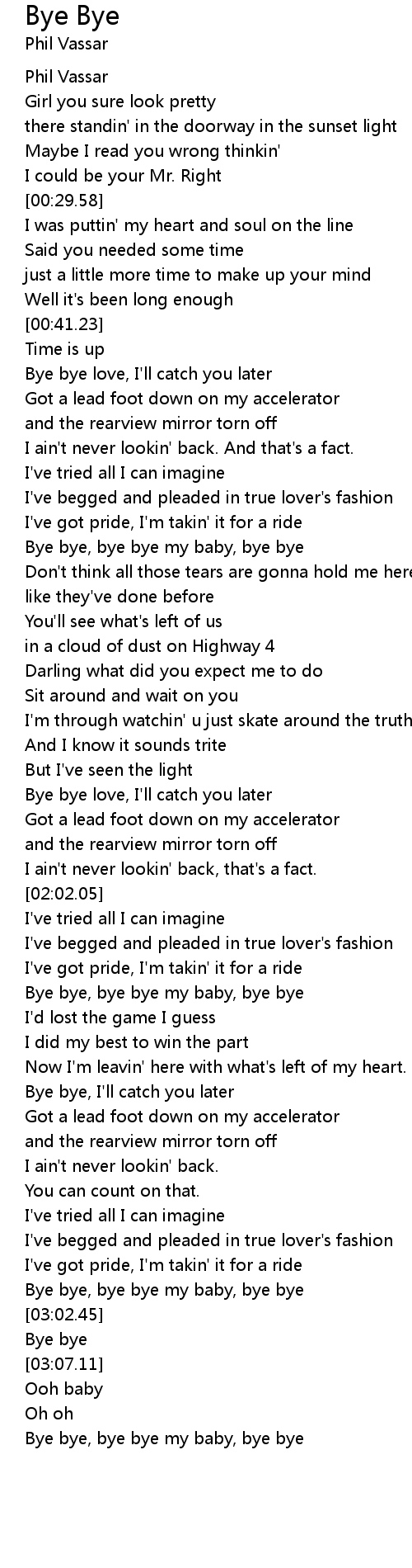Bye bye, bye bye my baby, bye bye |