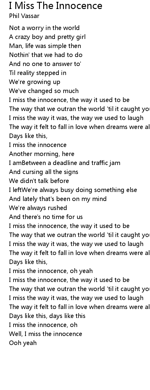 I miss the innocence |