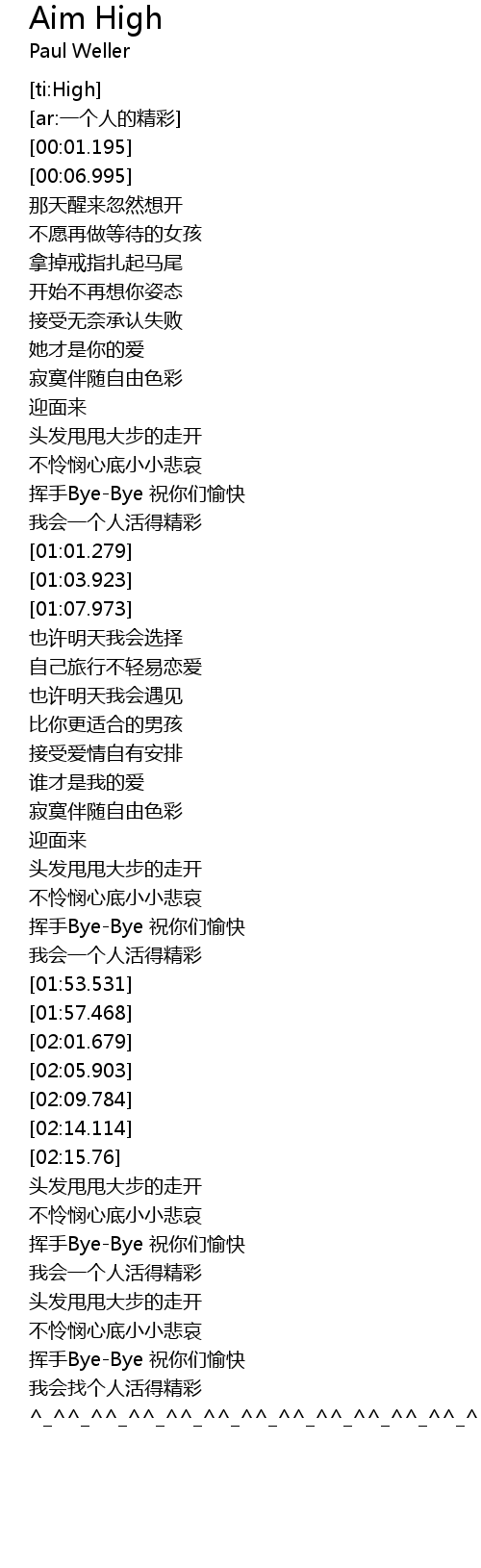 | [02:27.279] | 我会一个人活得精彩 |