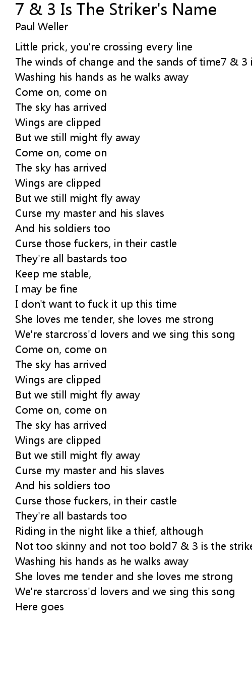 The winds of change and the sands of time7 & 3 is the striker's name |