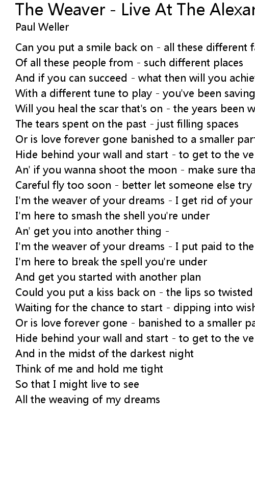 I'm the weaver of your dreams - I put paid to the rocketman |