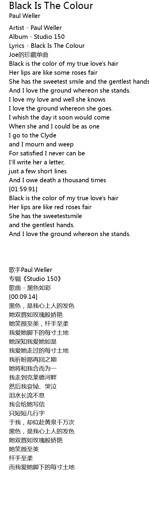 | [00:06.30] | Lyrics - Black Is The Colour |