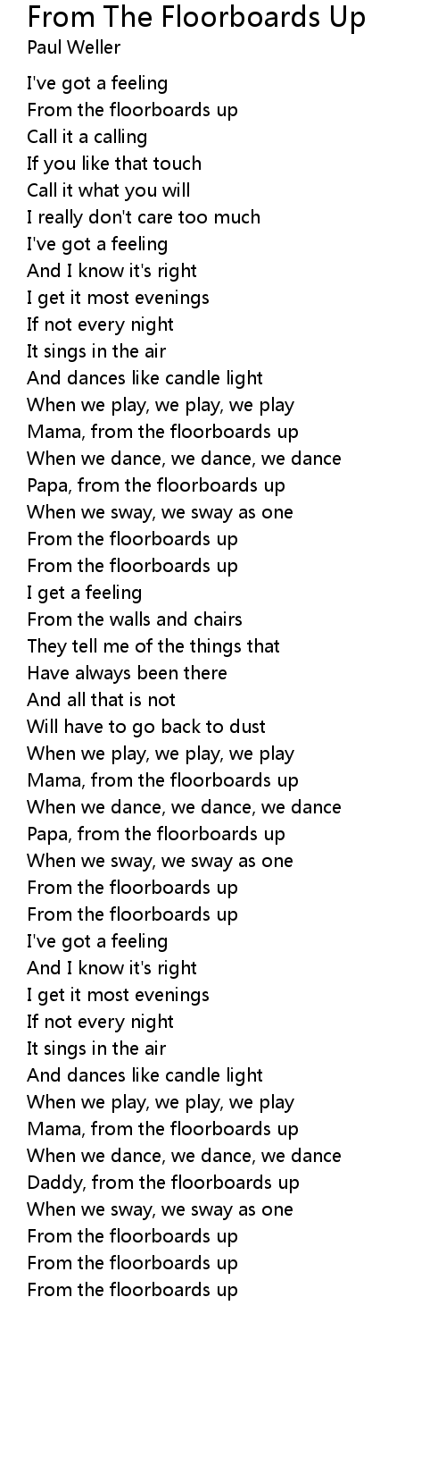 Daddy, from the floorboards up |