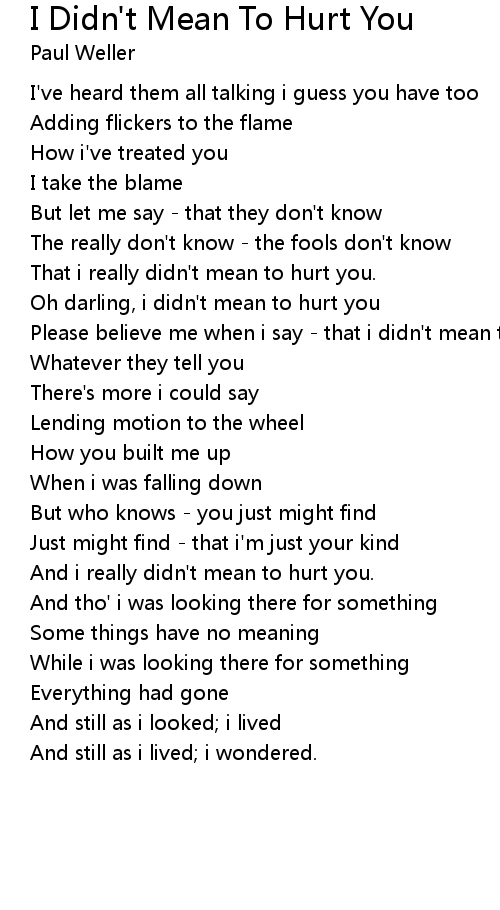 Please believe me when i say - that i didn't mean to hurt you girl. |