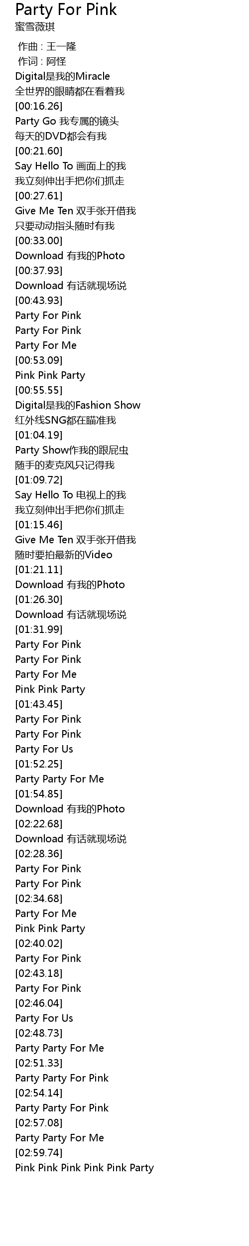 | [02:38.02] | Pink Pink Party |