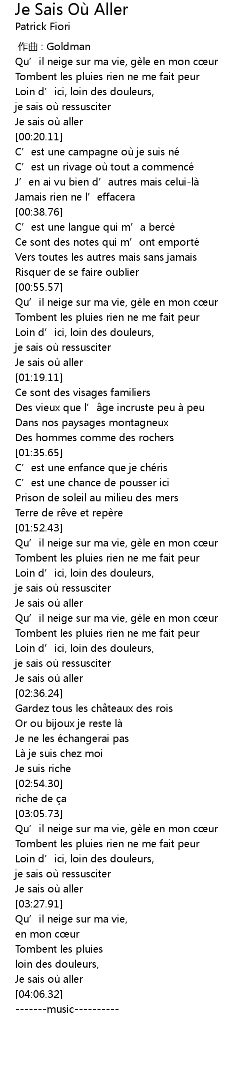 | [03:12.56] | Tombent les pluies rien ne me fait peur |