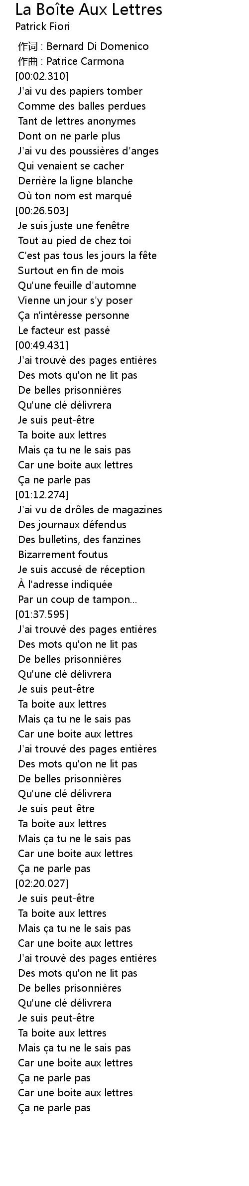 | [00:01.000] | zuo qu : Patrice Carmona |
