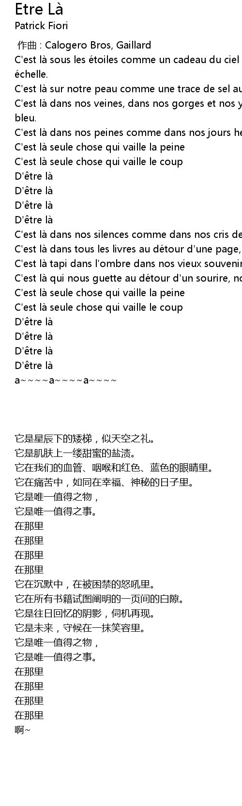 | [01:34.00] | C' est la qui nous guette au de tour d' un sourire, notre avenir. |