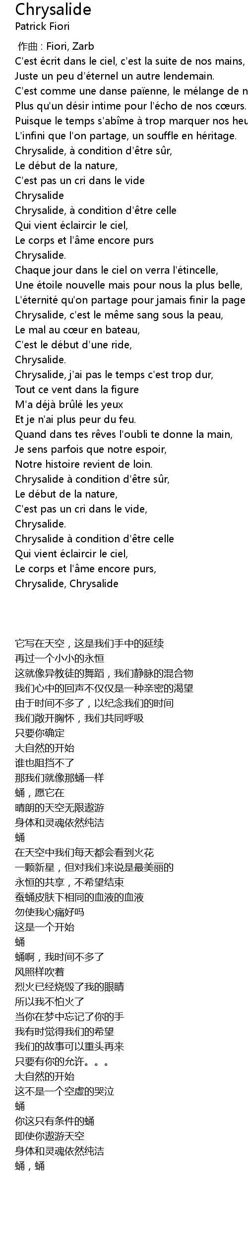 | [03:18.19] | Chrysalide, Chrysalide |