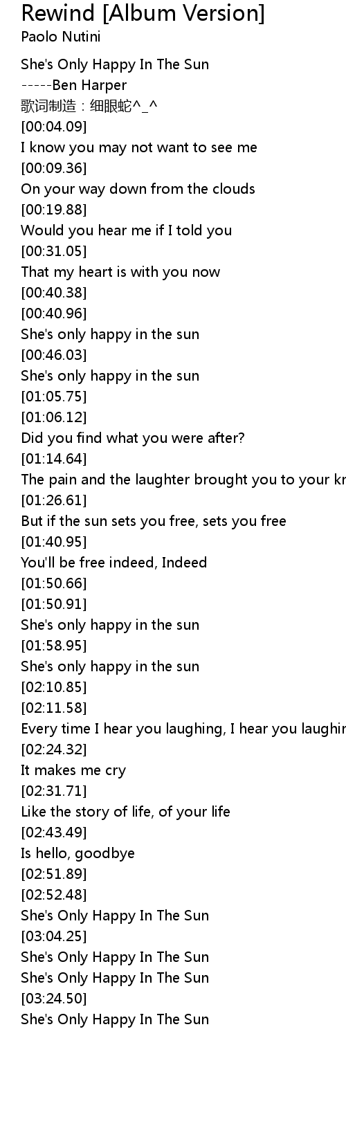 | [03:17.78] | She' s Only Happy In The Sun |