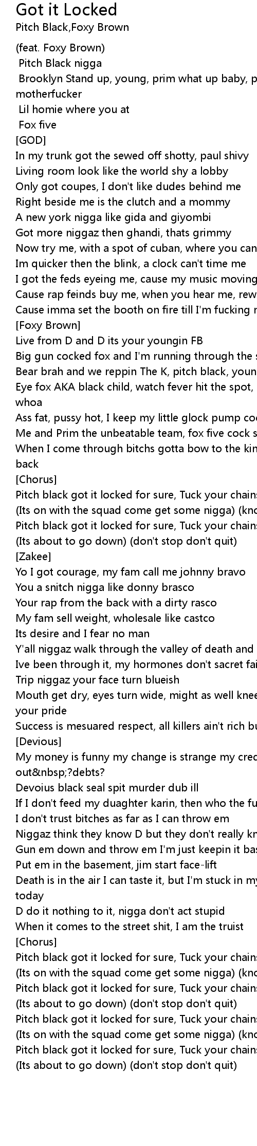 [Foxy Brown] Brooklyn Stand up, young, prim what up baby, pitch black motherfucker |