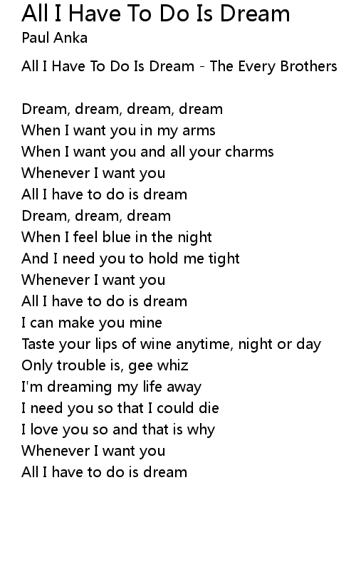 All I have to do is dream |