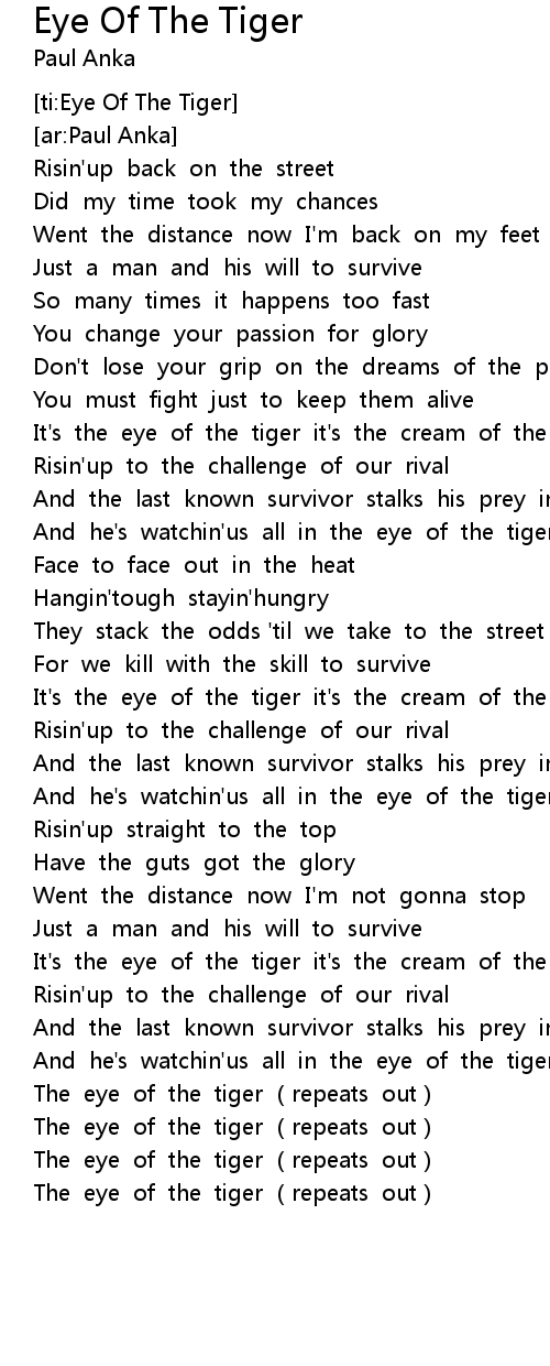 | [03:45.09] | The eye of the tiger (repeats out) |