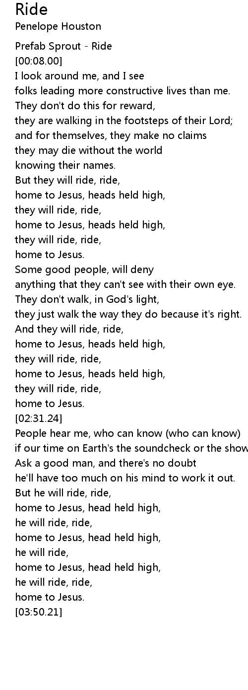 But he will ride, ride, |