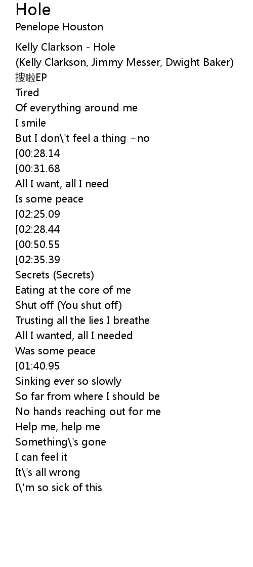 | [02:39.38][02:25.09][01:33.88][00:43.09] | There' s a hole |
