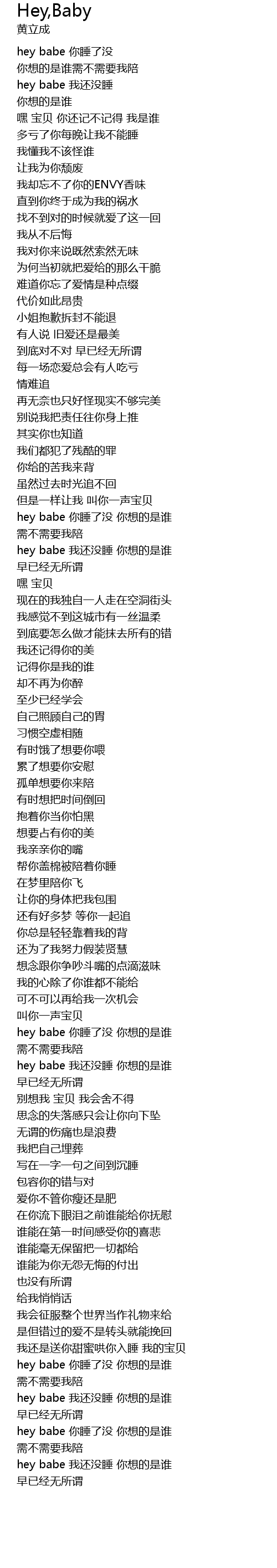 | [02:17.890] | hey babe 你睡了没 你想的是谁 |