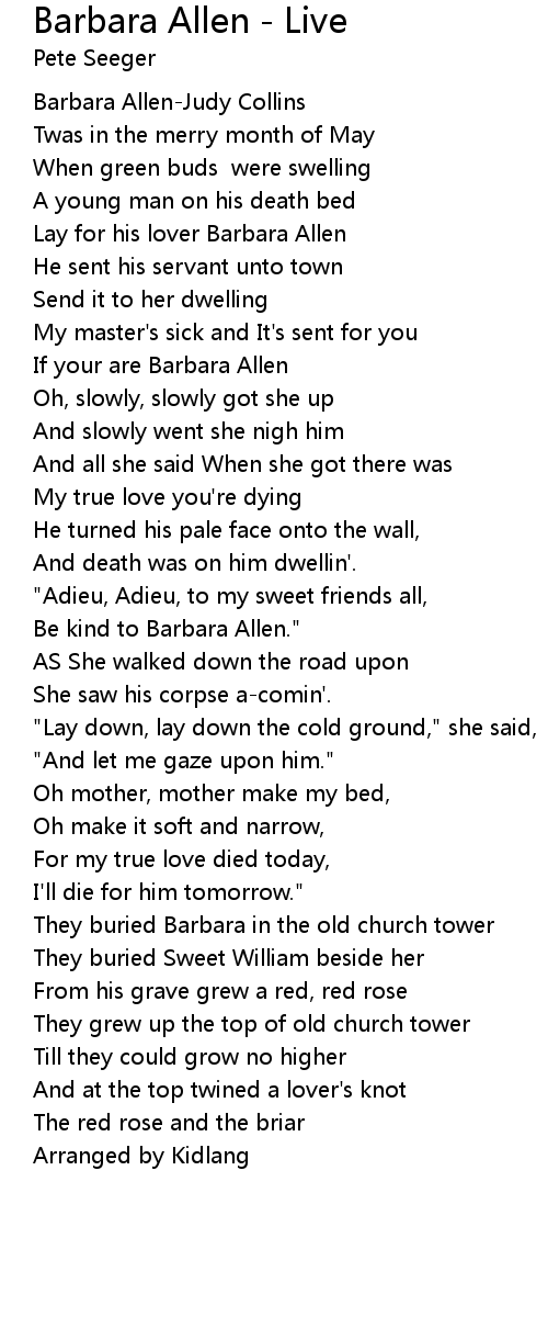 Barbara Allen - Live Lyrics