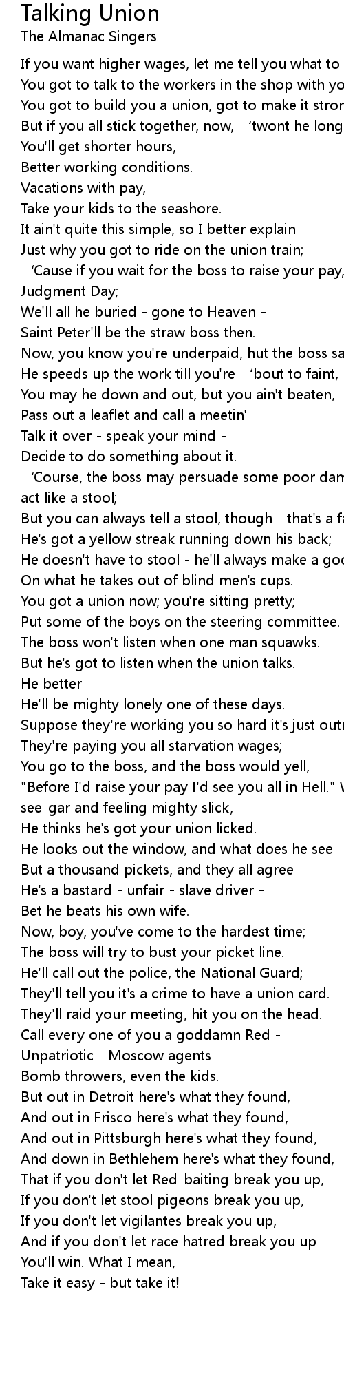 | ‘Cause if you wait for the boss to raise your pay, We'll all be waiting till Judgment Day; | |