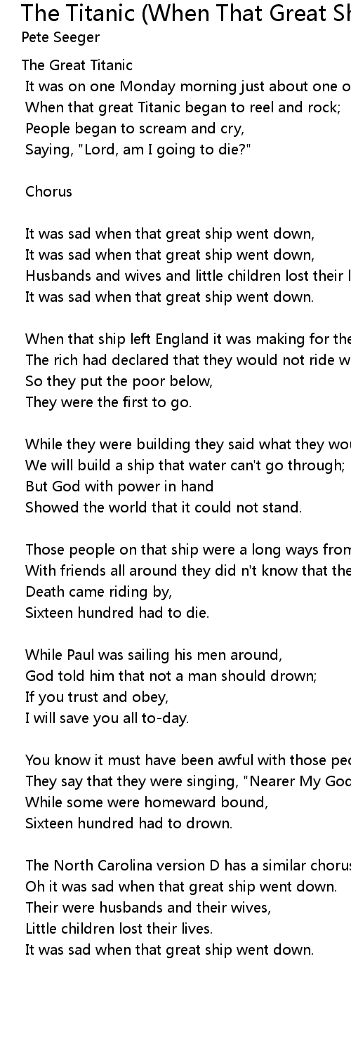 It was sad when that great ship went down, |