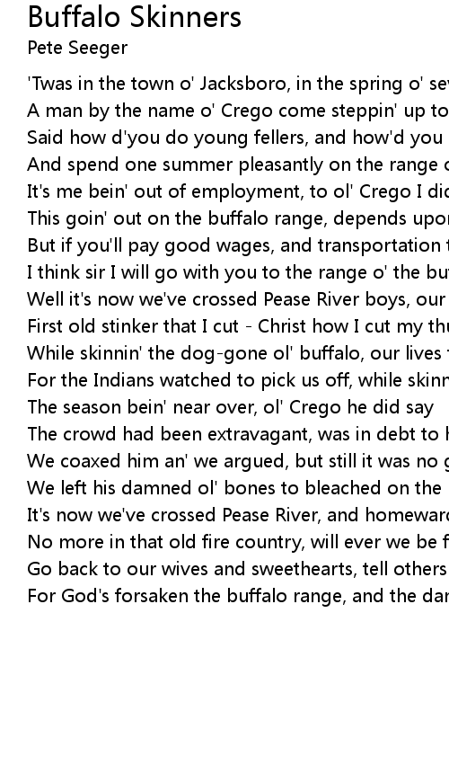 For the Indians watched to pick us off, while skinnin' the buffalo |