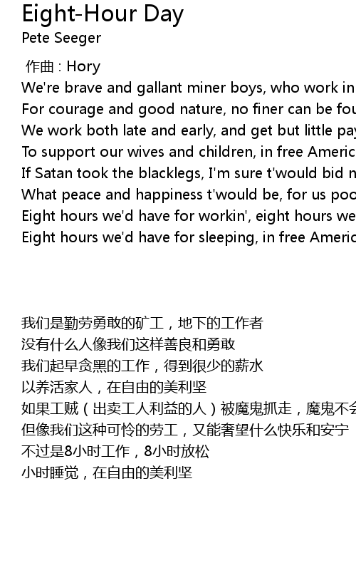 | [00:43.25] | Eight hours we'd have for workin', eight hours we'd have for play |