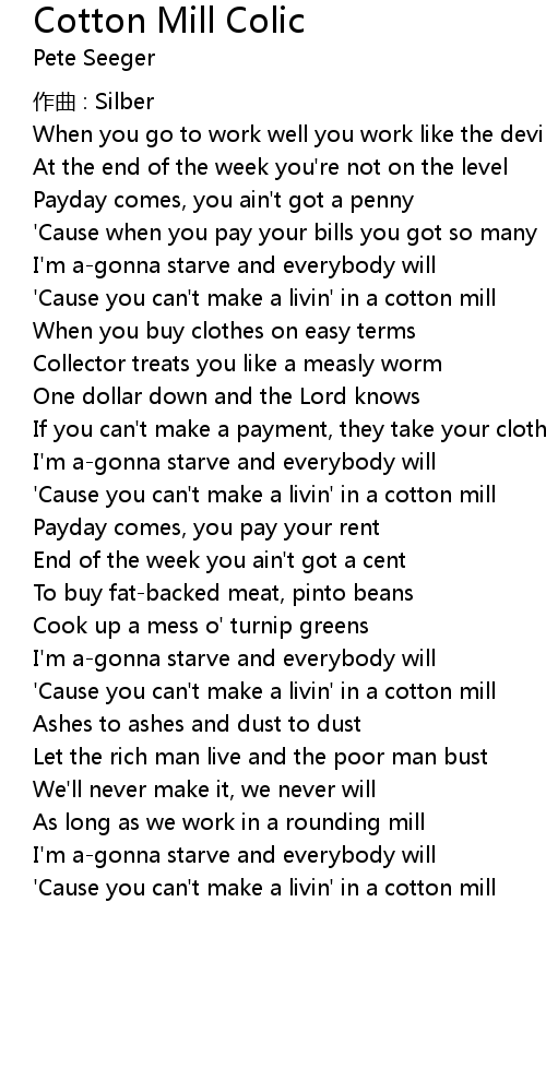 | ' Cause you can' t make a livin' in a cotton mill | |