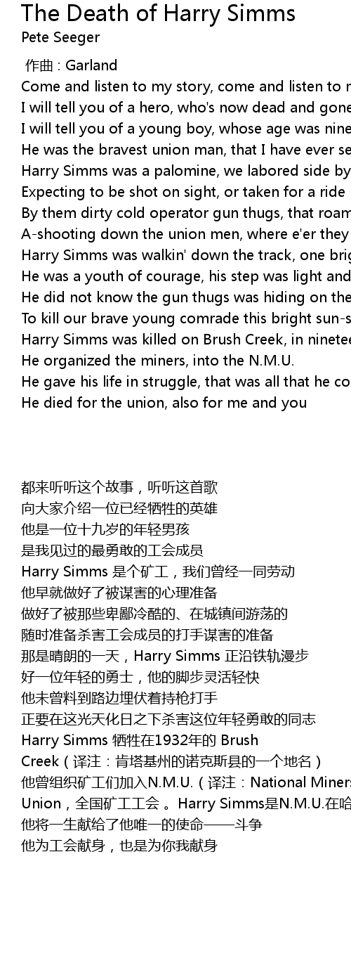 | [01:43.12] | Harry Simms was killed on Brush Creek, in nineteen thirtytwo |