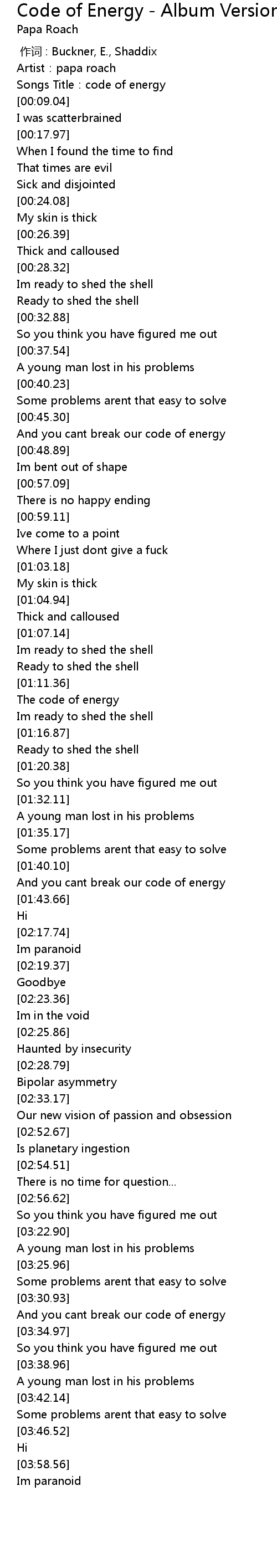 | [00:00.00] | 作词 : Buckner, E., Shaddix |