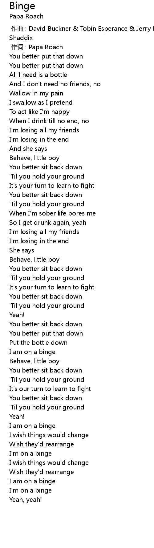 | [00:01.00] | 作词 : Papa Roach |