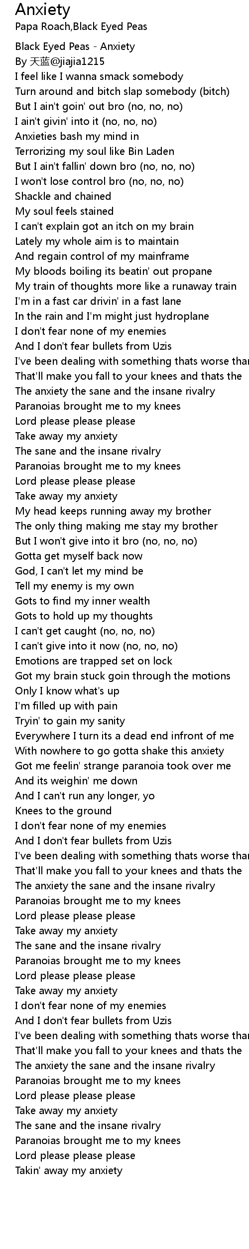 | [00:00.50] | Black Eyed Peas Anxiety |