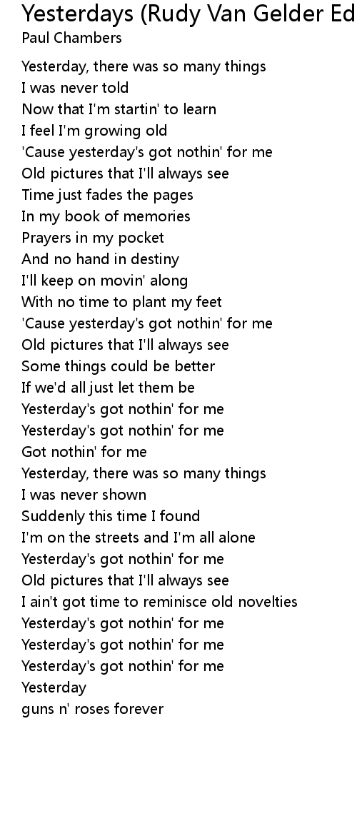 'Cause yesterday's got nothin' for me |