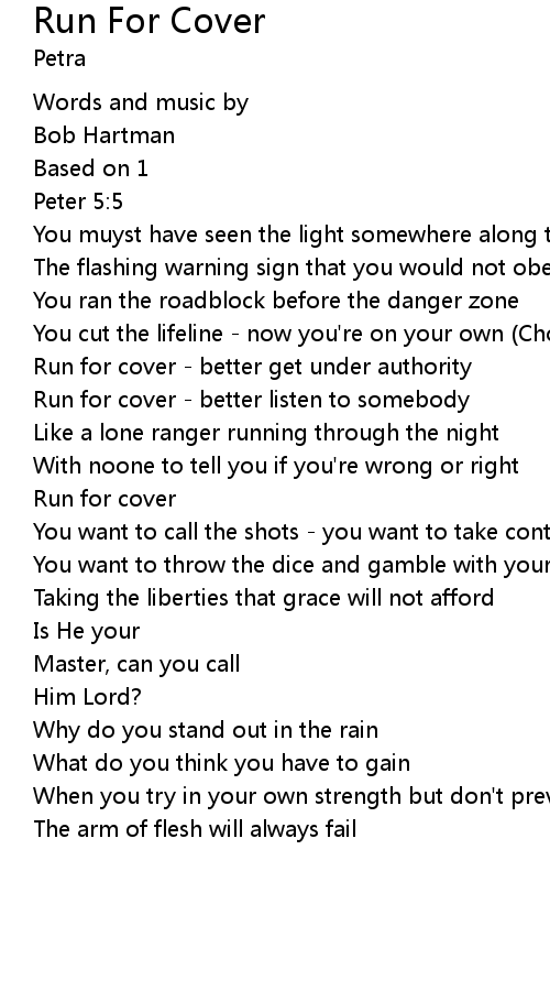 Run for cover - better listen to somebody |