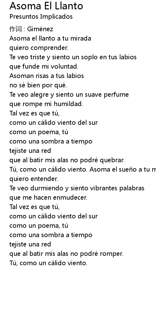 | Tu, como un ca lido viento. Asoma el sue o a tu mirada | |