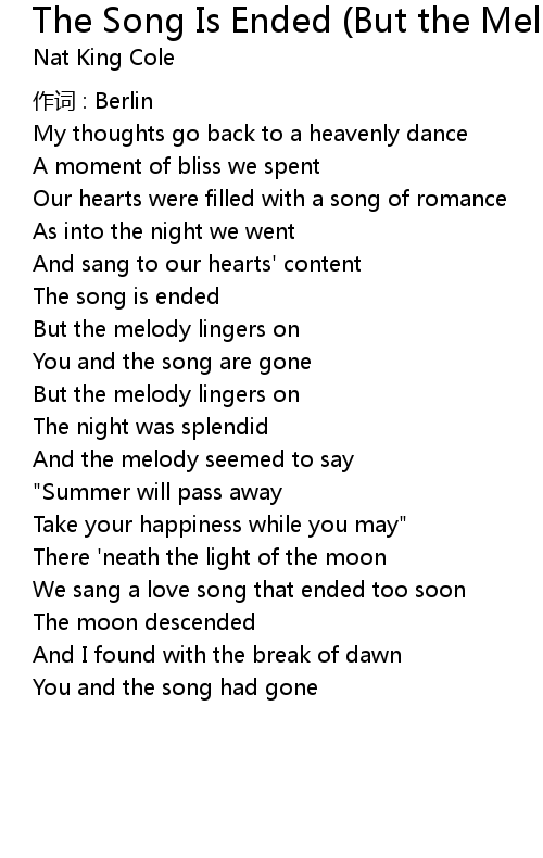 | Song | The Song Is Ended (But the Melody Lingers On) |