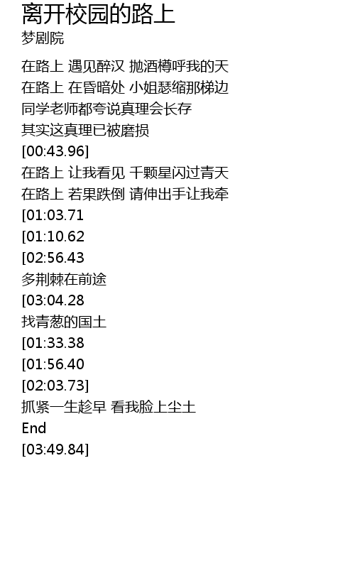 | [00:49.18] | 在路上 让我看见 千颗星闪过青天 |