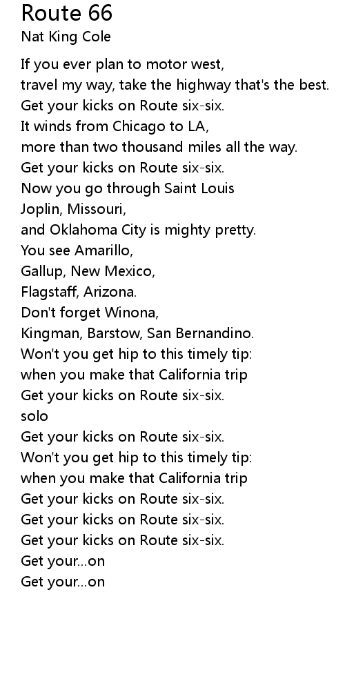 | [00:53.400] | Get your kicks on Route sixsix. |