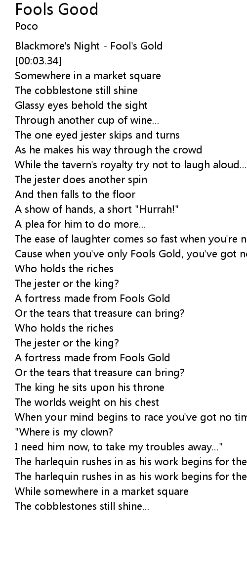 Cause when you've only Fools Gold, you've got nothing more to lose... |