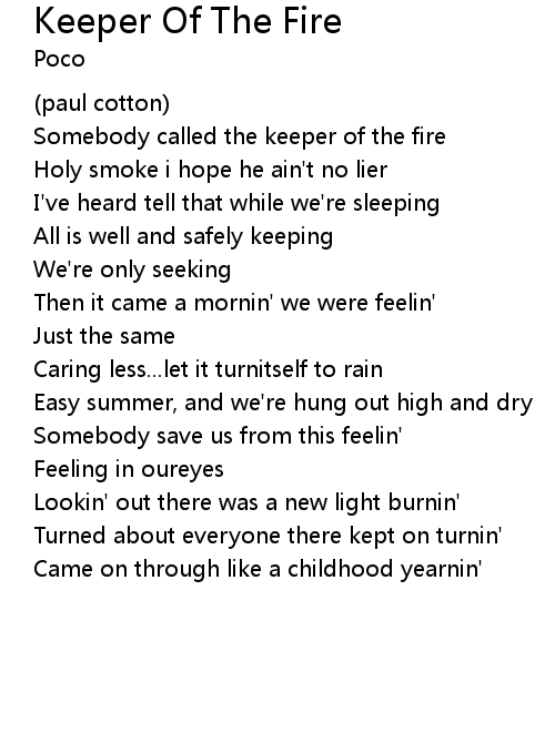 | Somebody called the keeper of the fire | |