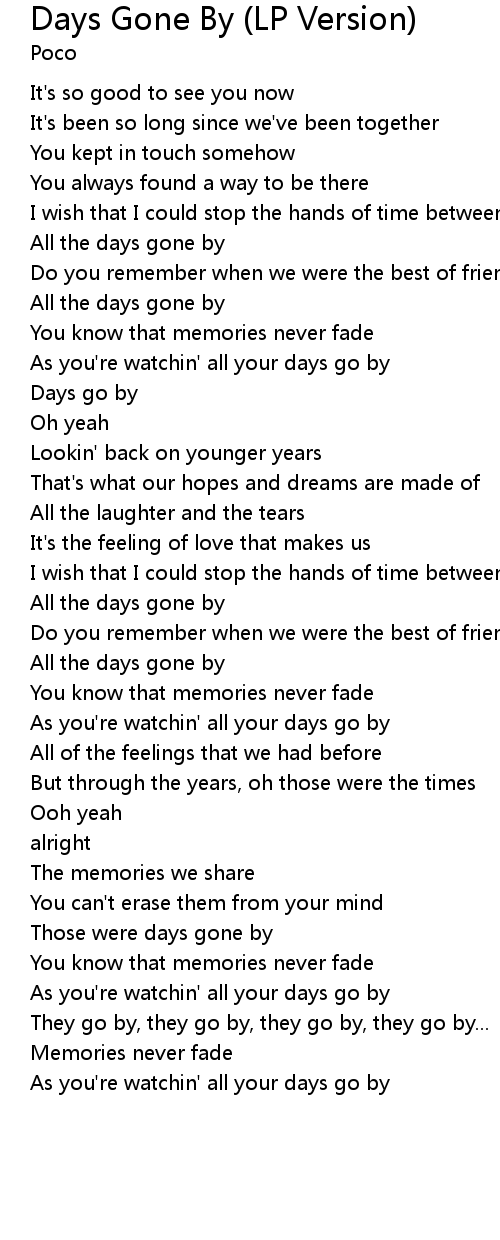 | [03:58.93] | They go by, they go by, they go by, they go by... |