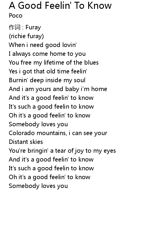 | Oh it's a good feelin' to know | |