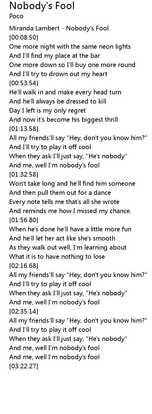 [00:00.18] Miranda Lambert - Nobody's Fool