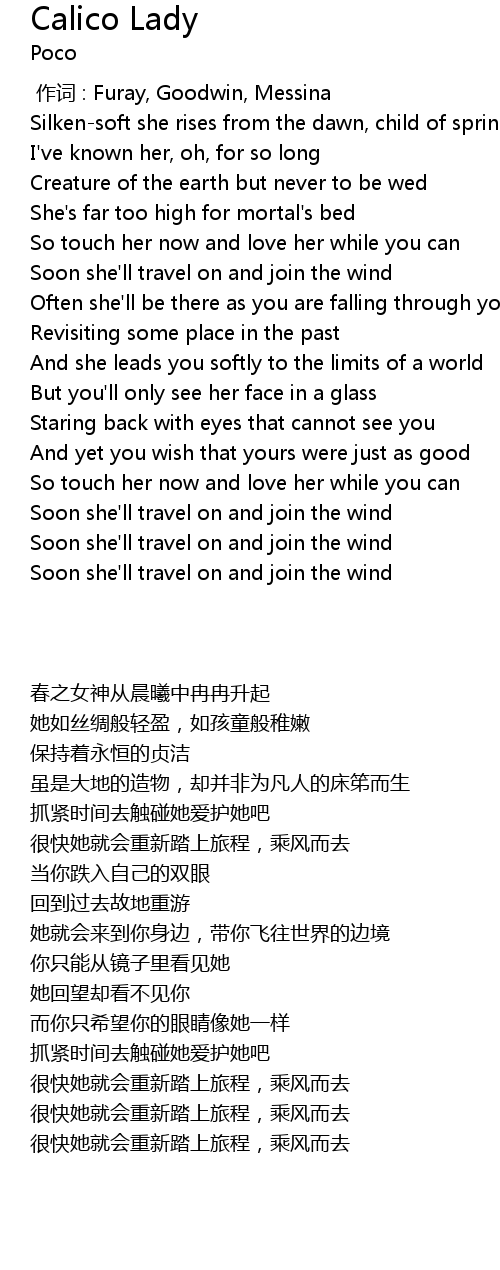 | [02:46.800] | Soon she'll travel on and join the wind |