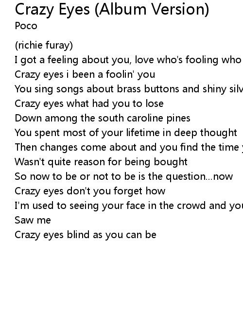 Crazy eyes i been a foolin' you |
