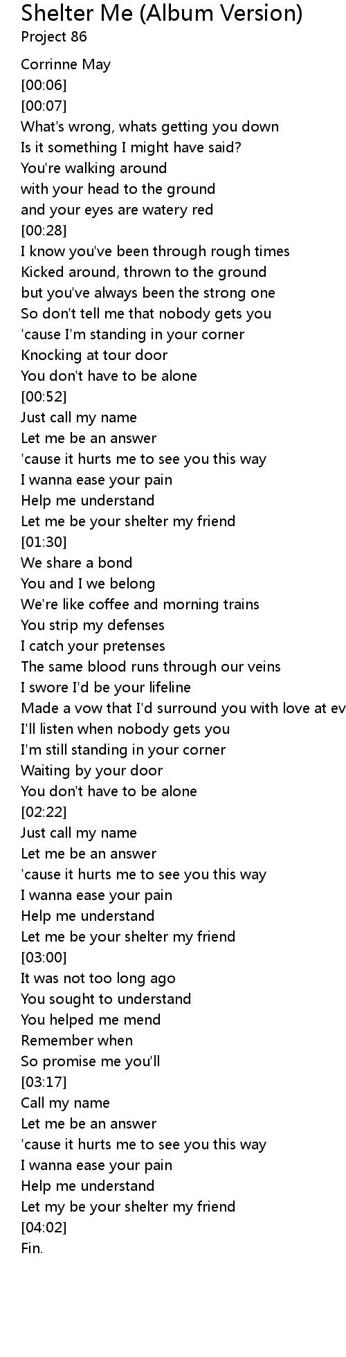 Let me be your shelter my friend |