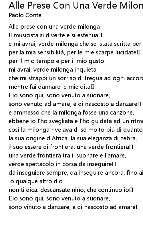 | Song | Alle Prese Con Una Verde Milonga - Live In Verona / 2005 |