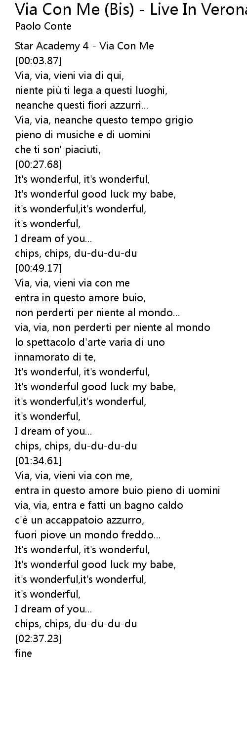 | Song | Via Con Me (Bis) - Live In Verona / 2005 |