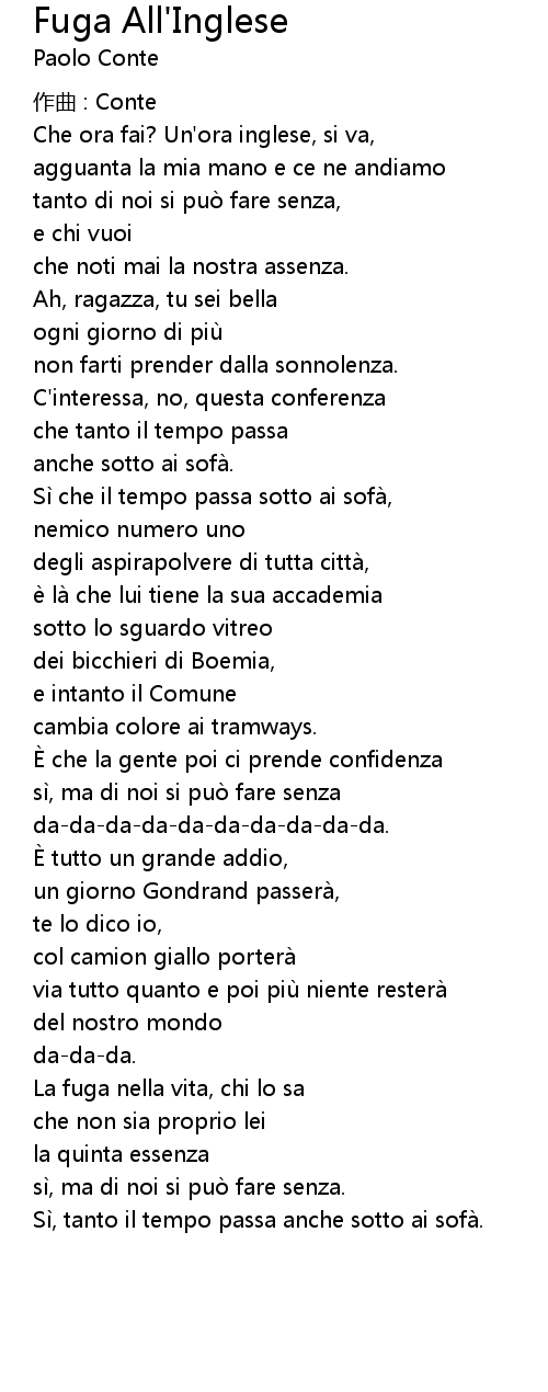 | Song | Fuga All'Inglese |