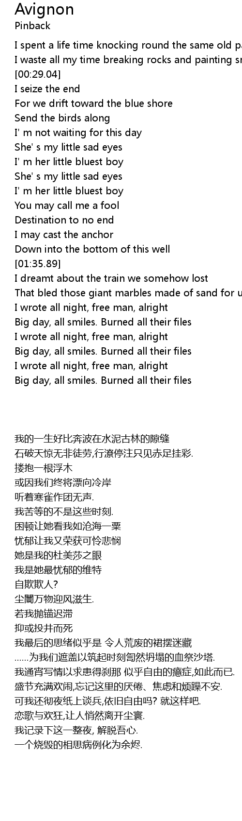| [00:19.89] | I waste all my time breaking rocks and painting smiles on my feet |