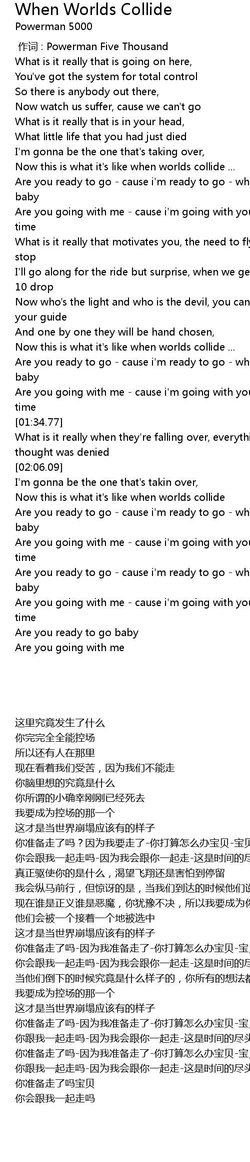 | [02:20.58] | Are you going with me - cause i'm going with you - it's the end of all time |
