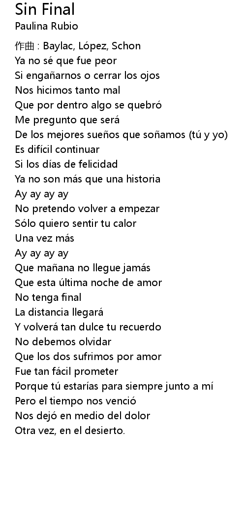 | Song | Sin Final |